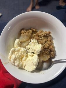 The best part about apple crumble is how well it reheats! I often make a big one and then we will eat it throughout the week. Apple Crumble also makes a great breakfast. Either you can microwave it, which is our usual method, or you can cover with foil and reheat at 350°f / 180°c in the oven until warmed through. Usually we tend to just warm up individual servings as needed though in the microwave. Apple crumble is also amazing cold!