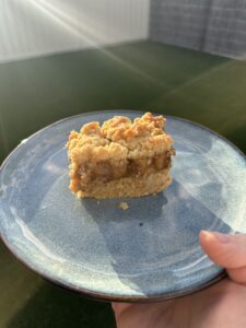 Made the filling yesterday and baked them this morning. Had one with a coffee. Really tasty, my bottom layer was a bit too crumbly so I'll pack it a bit tighter next time. There's only 2 of us so u halved the biscuit/crumble morning but kept the apple one the same and froze it. Will make a batch to take on holiday in Wales in a couple of weeks.