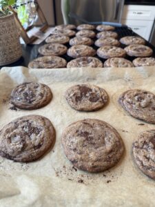 My new favorite go to chocolate chip cookie recipe!! The texture of these cookies are perfect- what dreams are made of! Cherry on top, no chill time and recipe uses brown butter (which I love using to bake). This is actually one of my first recipes using weight to measure out ingredients… IT’S A GAME CHANGER. Not only do I only use one bowl for everything but everything comes out perfectly each time I remake this recipe. DO NOT SLEEP ON THIS RECIPE.