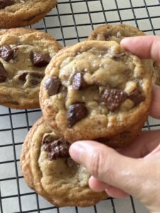These cookies are DIVINE! I get asked to make them by friends/neighbors/coworkers all the time. I’ve been making them with a combo of dark and semi sweet chocolate chips, and topped with flaky sea salt. I’ve tried dozens of chocolate chip cookie recipes over the years and this is the best out there.