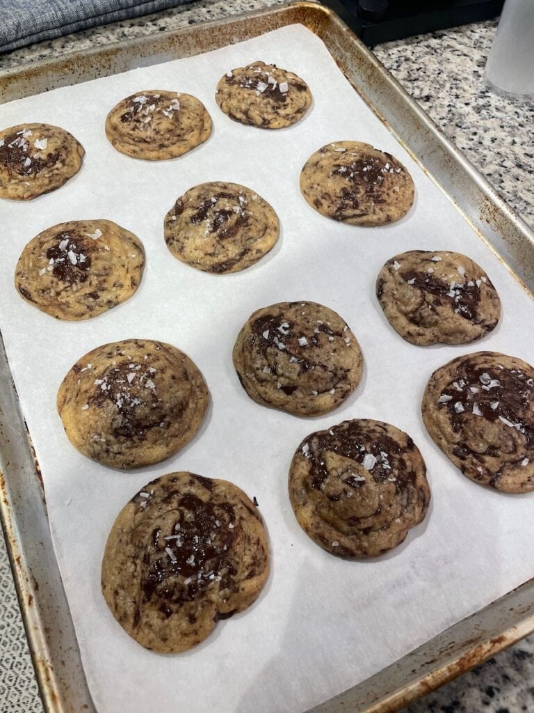 Texture is amazing, especially when using a stoneware which I highly recommend. Only thing is they are a bit too salty. Idk if anyone else found this but I’m a big fan of salt and it was too much for me. For others trying this I would add way less salt and then you can always sprinkle a bit on top while the cookies are cooling if you find they need more 🙂