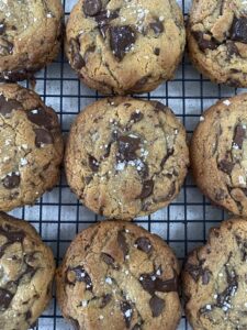 Loved the recipe! I made some of my own modifications and subbed 10 grams of the melted brown butter and added 10 grams of rum (best baking decision ever made) I love salted cookies but I thought there was too much salt so I halved the salt and it was *perfect*. The dough was too runny and I had to add extra flour. I froze the dough for an hour though and that also helped. I had to fix a lot in this recipe and would have been disappointing if I wasn't experienced enough to know what to change. I have a kitchen scale and I know I did everything right. I will be doing these again but applying my modifications every time.