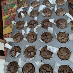 - Portion the brownie batter between the 24 mini muffin cups - I use a #40 cookie scoop and fill them almost to the top. Try to fill each cup evenly but it is not the end of the world if you don’t manage.