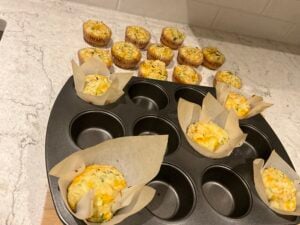 I loved this recipe. I doubled the mixture, added Greek yogurt for some of the milk, and added some peas and corn for something different. The cheese I used was a combination of smoked chipotle and cheddar as well as tasty cheese. Made 12 large muffins and an 8” square baking dish. Will definitely make this again. Yum!