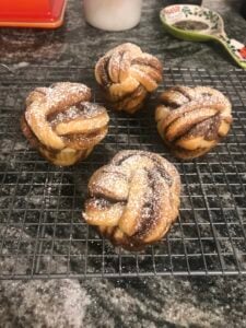 Yes! You can do whatever you like here. They would be delicious sprinkled with some Swedish pearl sugar before they go in the oven, or you could glaze them babka style with a sugar syrup as soon as they come out. I just used powdered sugar, but these would also be good with a simple icing.