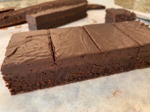 - Remove the brownie from the oven and leave to stand for 5 minutes before starting making the icing.