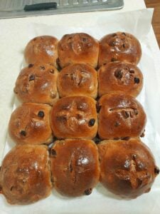 Your hotcross bun recipe is an absolute gem! The crowd that I sell to here in Stanford at our morning market, are predominantly pensioners. I took the liberty of adding citrus peel to your recipe to make it more old school. I made a triple batch, portioned at 120g per bun and hey sold out in 45 minutes. Your recipe is a new best seller on my table. Thank you very much for your exhaustive testing and commitment to your craft