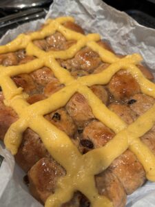 If you have leftover pastry cream, you can serve it alongside the hot cross buns to spread on like butter.