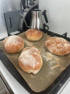 Arrange the ciabatta buns on your sheet pan so they have some space between them, as they do flatten out slightly as they rest. It is not the end of the world if they touch a little!
