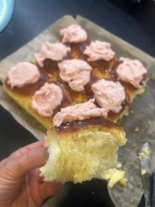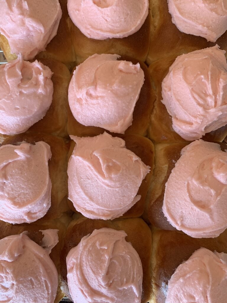 When I first saw these pink buns on instagram I knew I had to make them. Spoiler Alert: they didn't disappoint! The recipe is simple to follow and the end results is a fluffy vet velvety roll that you can slather in as much pink icing and butter as you desire.