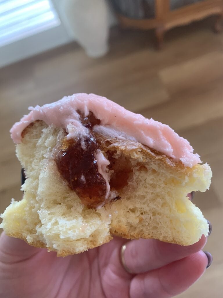 I of course had to recreate them with my super soft dough. I didn't stray too far from the original - perfect, super soft bun, raspberry jam filling, and a super sweet but very very nostalgic pink icing. They taste just right.