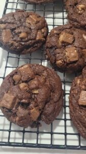 These Double Chocolate Kit Kat Chocolate Chip Cookies are perfect for using up Halloween candy. They are soft and chewy in the center and slightly crunchy around the edges, and are filled with chocolate chunks and chopped Kit Kat.