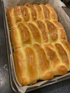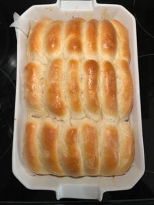 These rolls are incredible. The white Bread Dough they are made from was so pillowy soft. The clam shell shape was a new thing for me. I made the mistake of not tucking the folded part under. I brought them to a Friendsgiving and they were a huge hit.