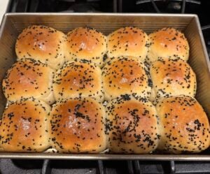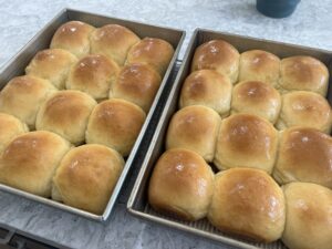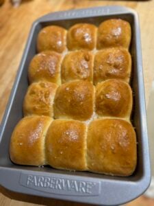 I did a double batch so I could experiment with two shaping techniques. I did a batch of Parker House according to Erin’s instruction and the second batch I shaped into clover rolls, fitting them into a 12 count muffin tin. Both were perfection!