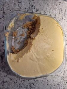 - Pour the base into the prepared pan, and pat down until smooth using the bottom of a flat glass or measuring cup, ensuring that it is an even thickness. Place in the freezer while you prepare the filling.