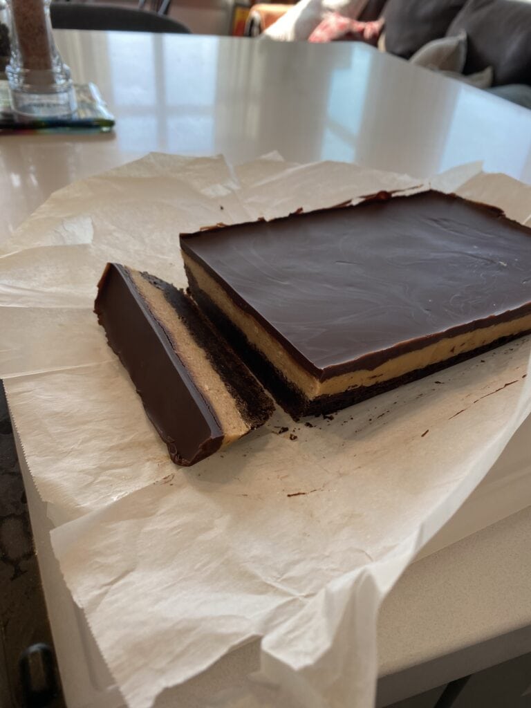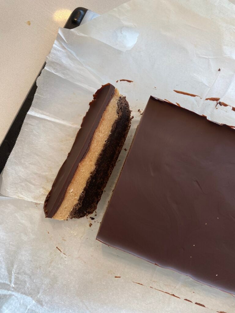 These bars are, to me, the perfect combination of peanut butter and chocolate. Truly tops all other PB & chocolate desserts. I always think the brownie layer is not enough for the pan but it is really a perfect recipe layer by layer. I find the salt is really well balanced in this recipe, but next time I may try adding a little flaky salt to the chocolate top just for fun. The bars store so well in the freezer too which is great if you are baking for one like I usually am. Adding a photo from my most recent bake 🤩