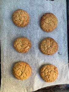 - Remove the pan from the oven and if desired, use a cookie cutter slightly larger than the cookie to ‘scoot’ them into a perfectly round shape. Repeat the baking process with the second pan of cookies.