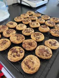 - Crispy outsides, and a chewy chocolate chip cookie middle