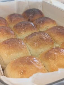 If you wanted to prepare these dinner rolls ahead, there are a few ways to do so. To make the dinner rolls from start to finish takes about four hours with two room temperature rises, so make sure you account for that if you are doing it all in one go.