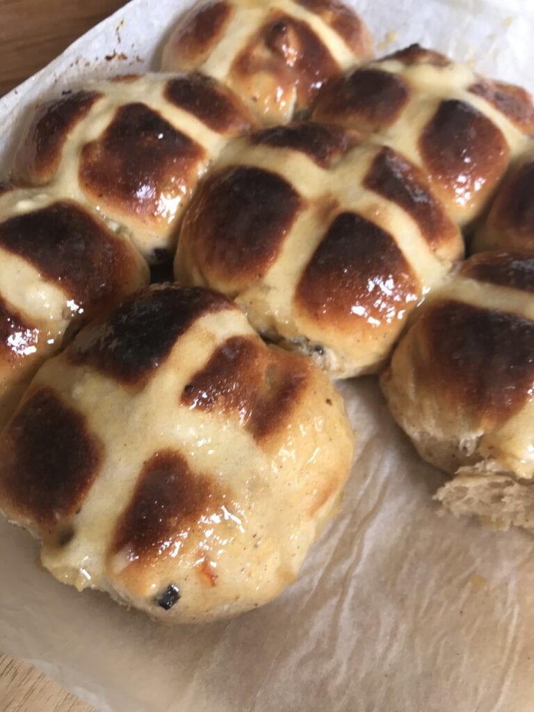 Making homemade hot cross buns is super fun and easy. If you would like some other variations on hot cross bun recipes I have a chocolate hot cross bun and also an apple and salted caramel hot cross bun recipe!