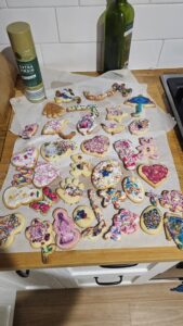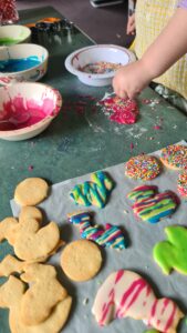 Thank you for the tip of popping them back in the freezer before baking. They kept their shape so well. The kiddos and I then had a blast icing them, including some terrible colour mixing to the horror of my perfectionism.