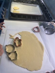 - Once you have cut out your cookies, place the baking sheets with the cut out dough on them in the freezer for 10-15 minutes to firm up slightly.