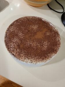 - Dust the top of the cake with cocoa powder. Store in the fridge until you serve.